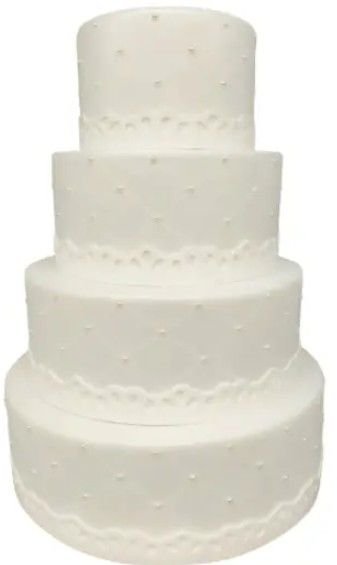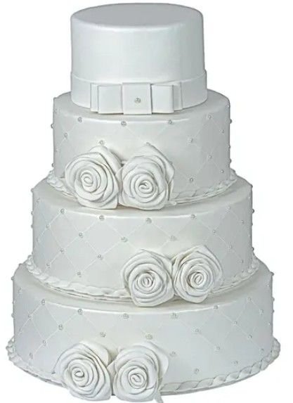 Esse bolo de casamento é decorado com pérolas e vem com quatro andares