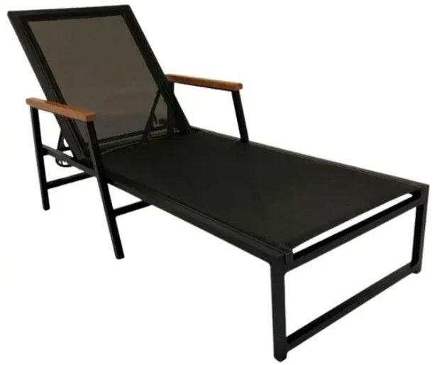 Essa espreguiçadeira é reclinável e feita em alumínio