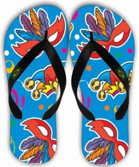 Esse chinelinho vem até com tema! Uau!