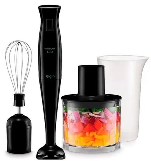 Simples e funcional, o Elgin Turbo Chef é um mixer portátil com 200W de potência e haste destacável. Ele é ideal pra tarefas básicas do dia a dia, como preparar molhos, sopas e sucos. Apesar da potência mais modesta, é suficiente pra quem quer agilidade na cozinha sem gastar muito. Arrasou!
