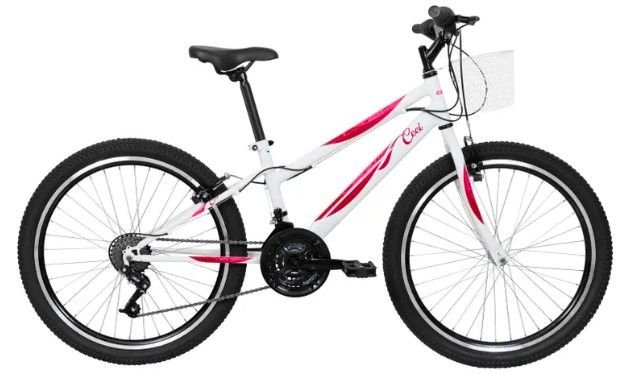 Se você tá aprendendo, a bicicleta aro 24 Caloi traz equilíbrio e leveza. Modelos como a Ceci 24 são indicados a adolescentes e adultos de baixa estatura, proporcionando comodidade e proteção. O quadro rebaixado facilita montar e descer do selim, ajudando bastante na saída.