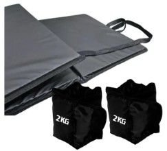 Esse kit de caneleiras e colchonete é perfeito pra malhar pernas e abdômen