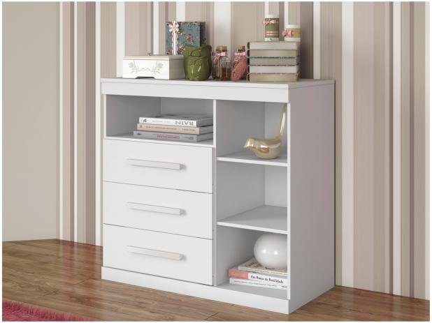A cômoda é um móvel ideal pra quartos, seja de adultos ou crianças, tá? Ela é ideal pra guardar roupas, cobertores, mantas ou lençóis. Na parte de cima, dá pra colocar objetos de decoração, como luminárias e porta-retratos.