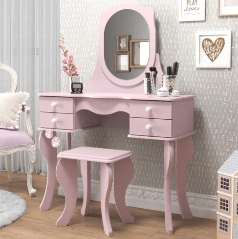 E olha, antes de instalar uma penteadeira infantil no quarto de crianças ou de pré-adolescentes, confira a matéria Como incentivar o autocuidado das crianças com uma penteadeira infantil.