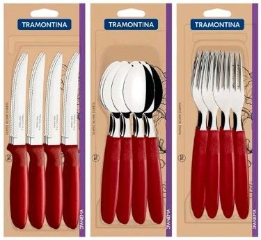 Além de não enferrujar, o inox mantém o brilho por bastante tempo se bem cuidado. Tem desde modelos básicos até versões mais modernas, com cabos coloridos, estampados ou com acabamentos diferenciados. Dá pra escolher um modelo descontraído pro café da manhã e outro elegante pro jantar. Tudo com muito estilo e funcionalidade.